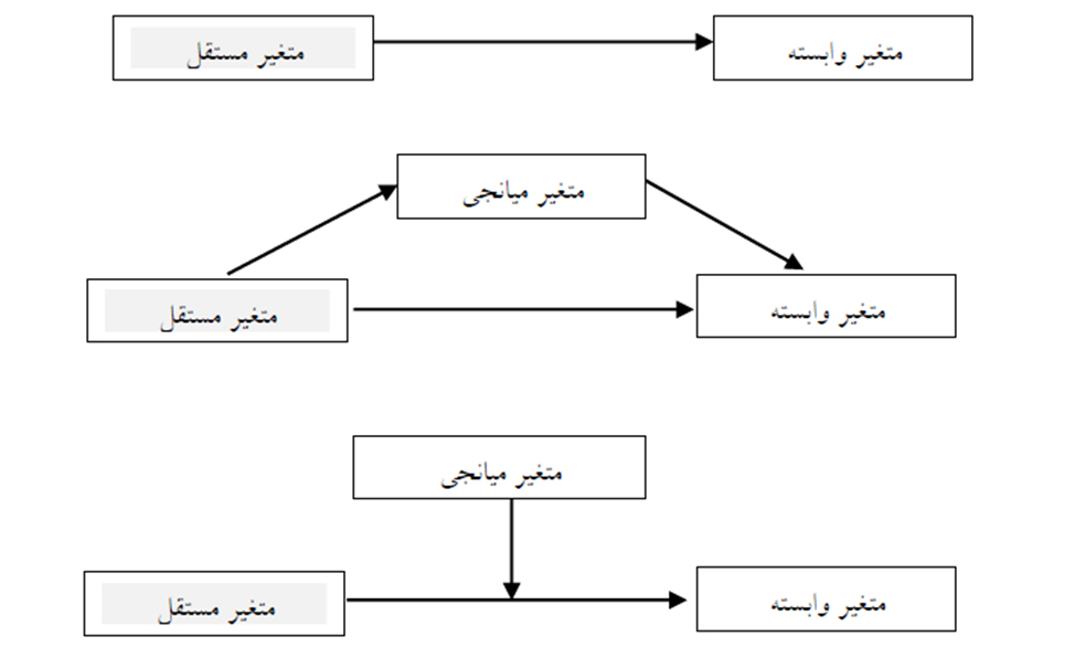 در مدل اول متغیرهای «مستقل و وابسته» بدون حضور متغیرهای واسط یا میانجی و در دیگر مدل ها با حضور متغیرهای میانجی «تعدیل کننده و کنترل» ارائه می شوند. متغیر تعدیل کننده نوع مستقل ثانویه ای است که اثر آن ئبر متغیر وابسته در کنار متغیر مستقل بررسی خواهد شد. برای نمونه در فرضیه «همبستگی بین هوش هیجانی و سواد ارتباطی دانش آموزان دختر بیشتر از دانشجویان پسر است»، «هوش هیجانی متغیر مستقل»، «سواد ارتباطی متغیر وابسته» و «جنسیت متغیر تعدیل کننده» است. متغیر تعدیل کننده اغلب در فرضیه معرفی می شود. متغیر کنترل متغیر مستقلی است که ثابت یا حذف خواهد شد. این نوع بیشتر در پژوهش های آزمایشی دارای دو گروه آزمایش و گواه کاربرد دارد. برای نمونه در فرضیه «پیشرفت آمادگی جسمانی دانش اموزان دارای والدین ورزشکار بیشتر از دانش اموزان با والدین غیرورزشکار است»، «ورزشکاری والدین متغیر مستقل»، «پیشرفت آمادگی جسمانی متغیر وابسته» و «عامل ژنتیک» متغیر کنترل است. همان طور که دیده می شود، متغیر کنترل اغلب در فرضیه نمی آید. «متغیر کنترل» متغیری است که نمی توان اثرش را بر متغیر وابسته نادیده گرفت، بنابراین در مدل پژوهش به همراه سایر متغیرهای مستقل گنجانده می شود. با این شرط که «تحت کنترل» یا «ثابت نگهداشتن» باشد تا بتوان تاثیر آن را بر روابط بین متغیر مستقل و وابسته بررسی کرد. اما متغیر تعدیل کننده به صورت آگاهانه و بر اساس مرور ادبیات پیشینه شناسایی و به عنوان بخشی از مطالعه برای ارزیابی چگونگی تعدیل رابطه بین متغیر مستقل و وابسته مورد توجه قرار می گیرد.